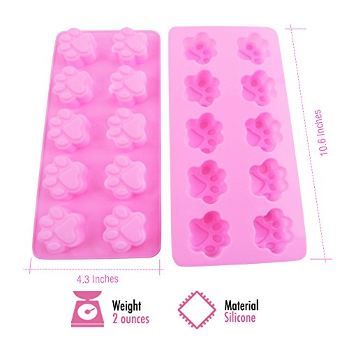 Dog Paws Mold (TM) is the biggest mold to give you the cutest cakes ever. These adorable pink puppy paw molds are ideal for dogs and treats fans Make treats for the whole family with these fabulous puppy molds. Ten leg cavities measuring 1.3 x 1.2 inches each are separated into two columns of six for dispersion and cleanliness.
