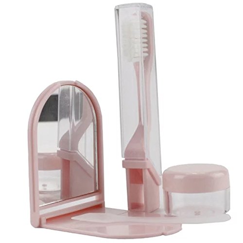 Material: PET Color Package of: pink: bottle of pump 2x 75ml, spray of 1x75ml, box of cream of 2x 15g, 1x toothbrush of mosaic, 1x mirror, 1x small comb of hair, 1x spoon with mask, 1xSallall washcloth, 1xTransparent Bags