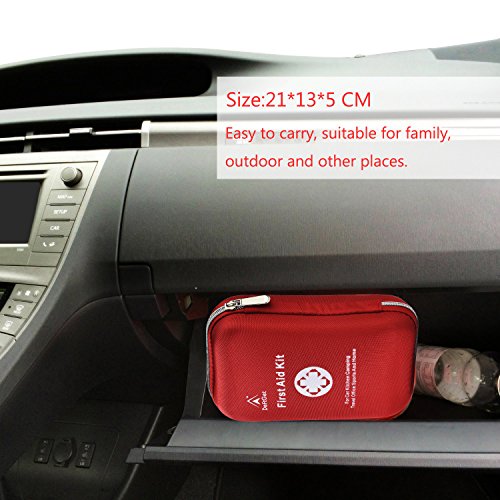 This kit will easily fit in your backpack or in the glove box. 18 Items in the first aid kit box - - Packed with 163 Piece medical-grade essentials - more bandages, flash light, saber cards , scissors, and so much more!