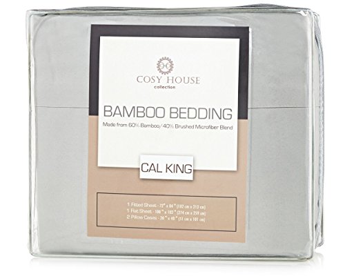 Cozy House Bamboo Bed Sheets, Bedding Set 4 Pieces | High blend of natural bamboo rayon fiber | Without wrinkles | 1 sheet deep sheet, 1 flat sheet and 2 pillowcases, CAL KING, silvered