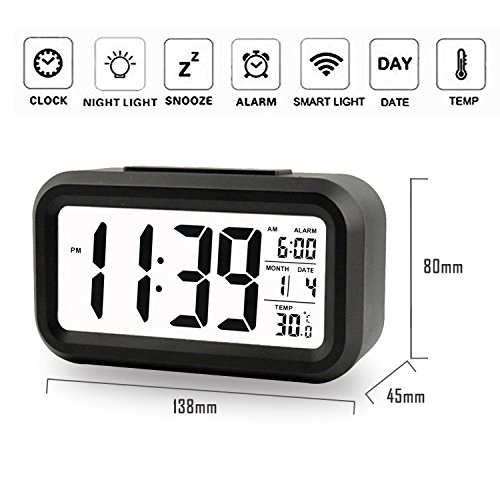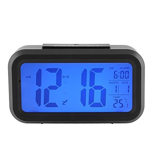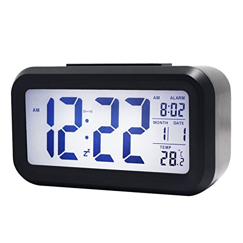 Alarm Clock Intelligent Backlit Alarm Clock with Dimmer, Powered by 3AAA Batteries, Controlled Backlight with Alarm Clock, Digital Easy to Set and Watch with Large LCD Light Sensor Low (Black)